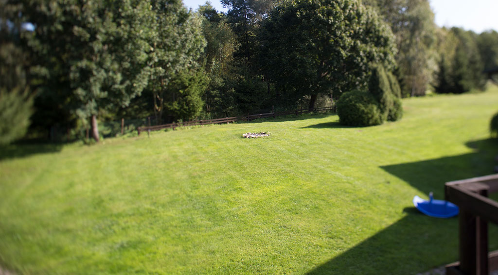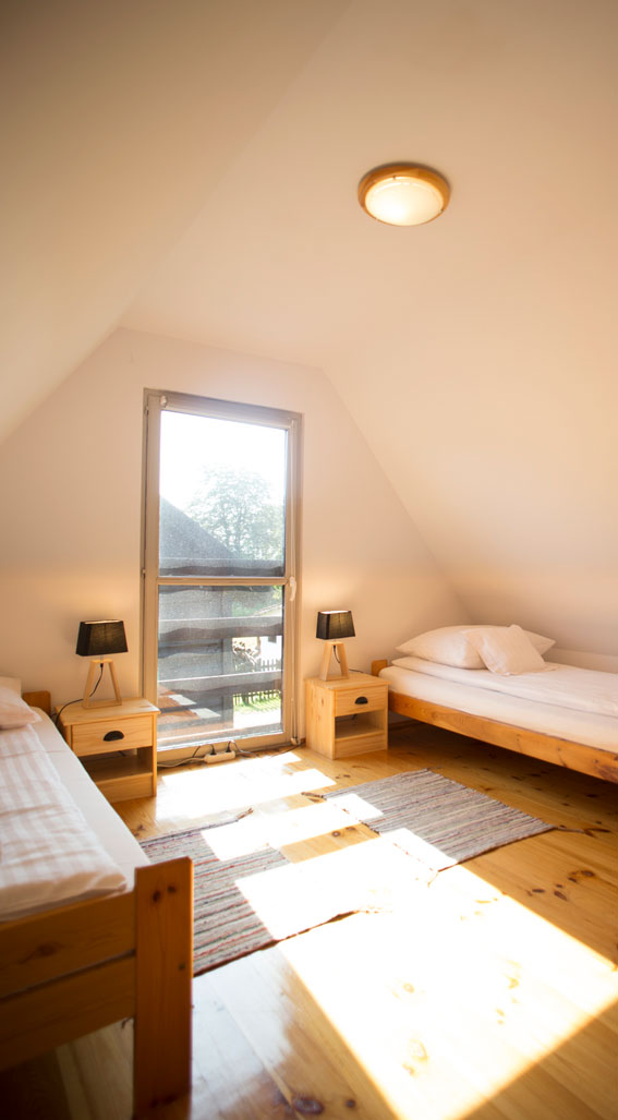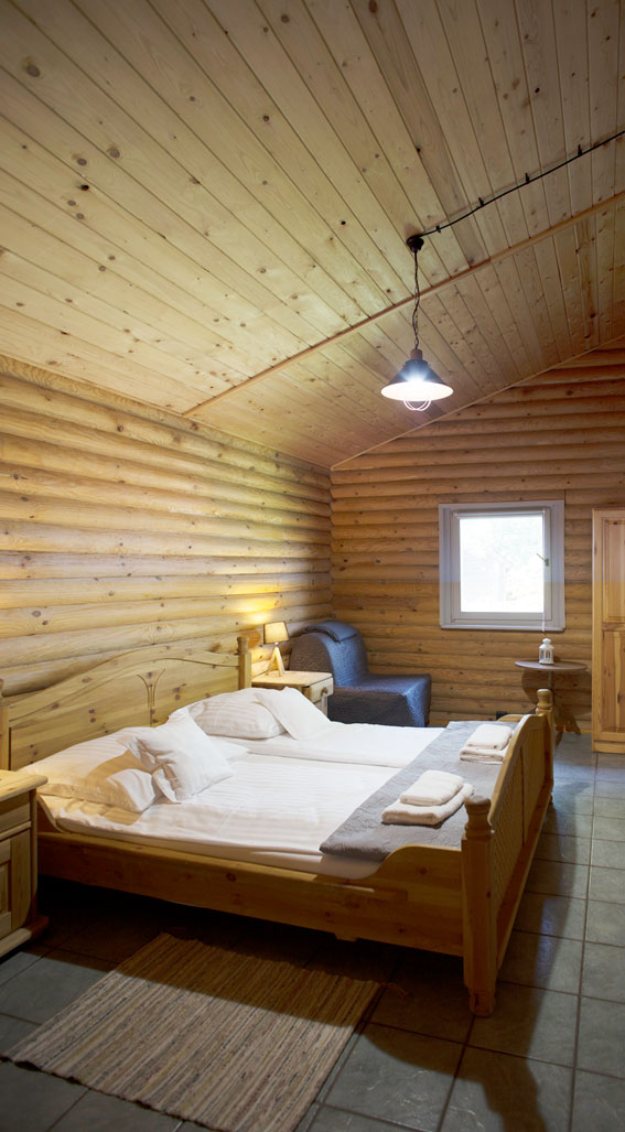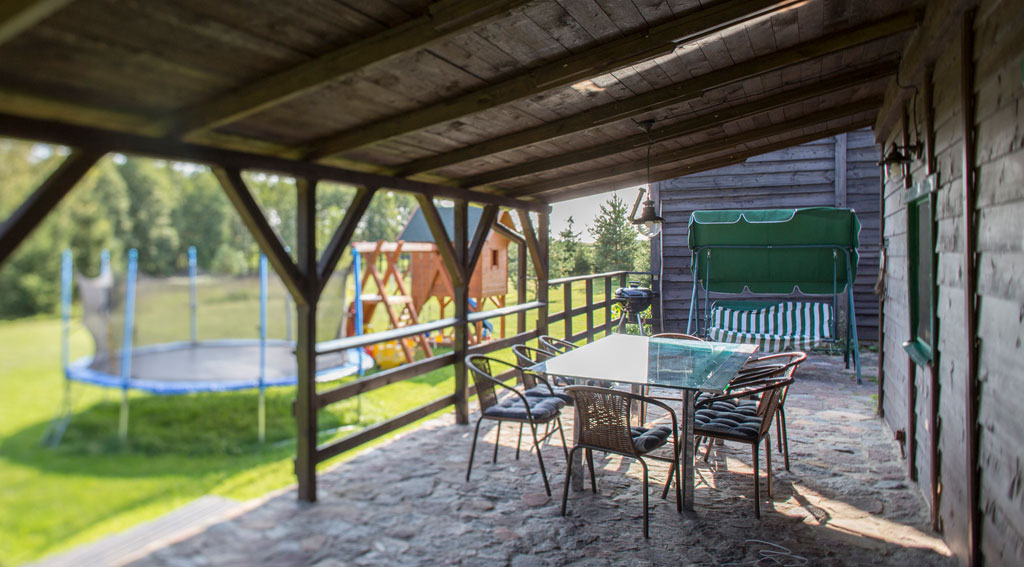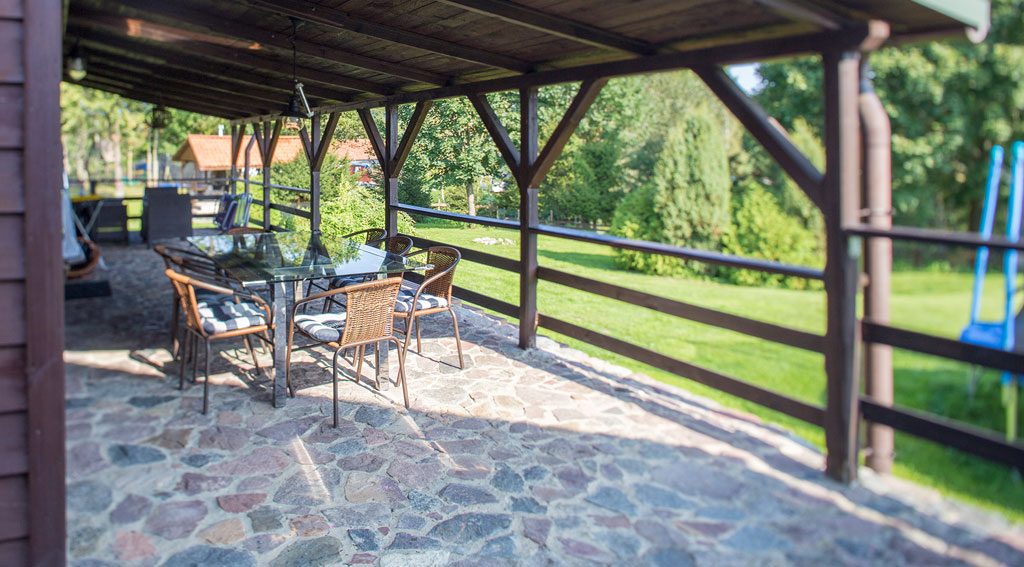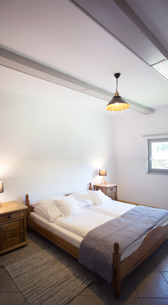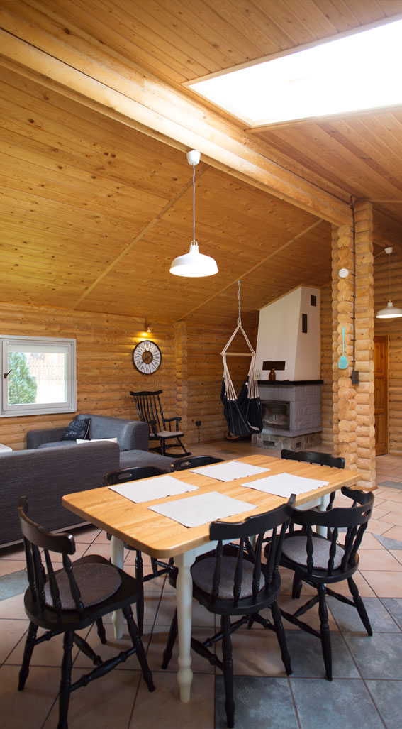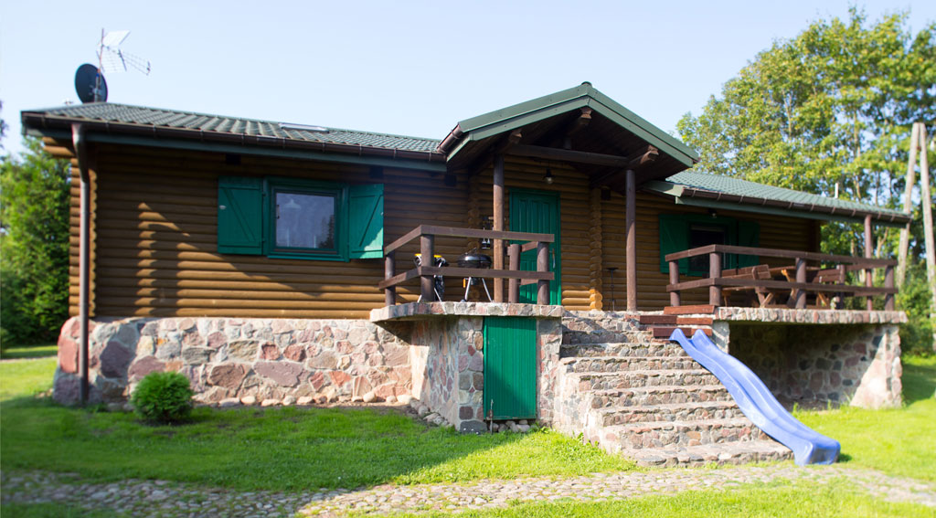 Перший будинок одноповерховий і характеризується прекрасним мазурським кліматом. Зроблений в технології округлих колод, він має величезну