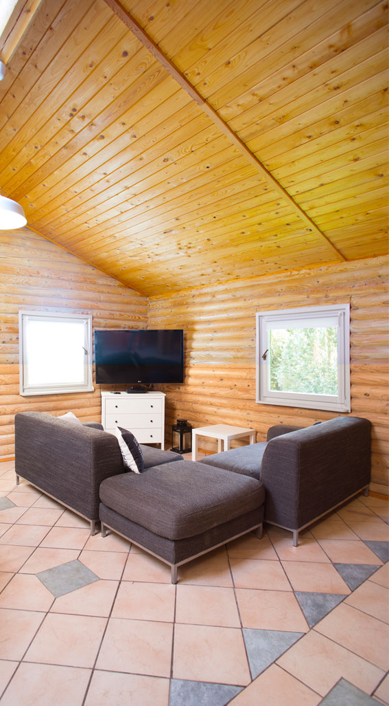 100 м² та прибудовою. Будинки це одноповерховий будинок з колоди та двоповерховий дерев'яний - обидва площею близько 110 метрів. Будинки виготовлені з дерев'яних брусів, завдяки чому їхні мешканці зможуть